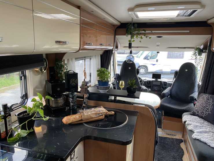 – Den här har vi boat in oss i. Vi kan fortfarande åka och titta på husbilar, men det är svårt att känna att något är bättre – det här är vårt lilla hem nu, säger Jeanette och Robban håller med: