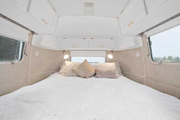 ”Nästan varje tum av det här 'skeppet' har finputsas för att skapa den lyxigaste campingupplevelsen NÅGONSIN!", skriver nuvarande ägaren på annonssidan.