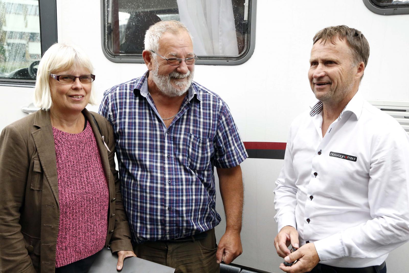 Dagens första husbilsköpare med vd Leif Persson till höger.