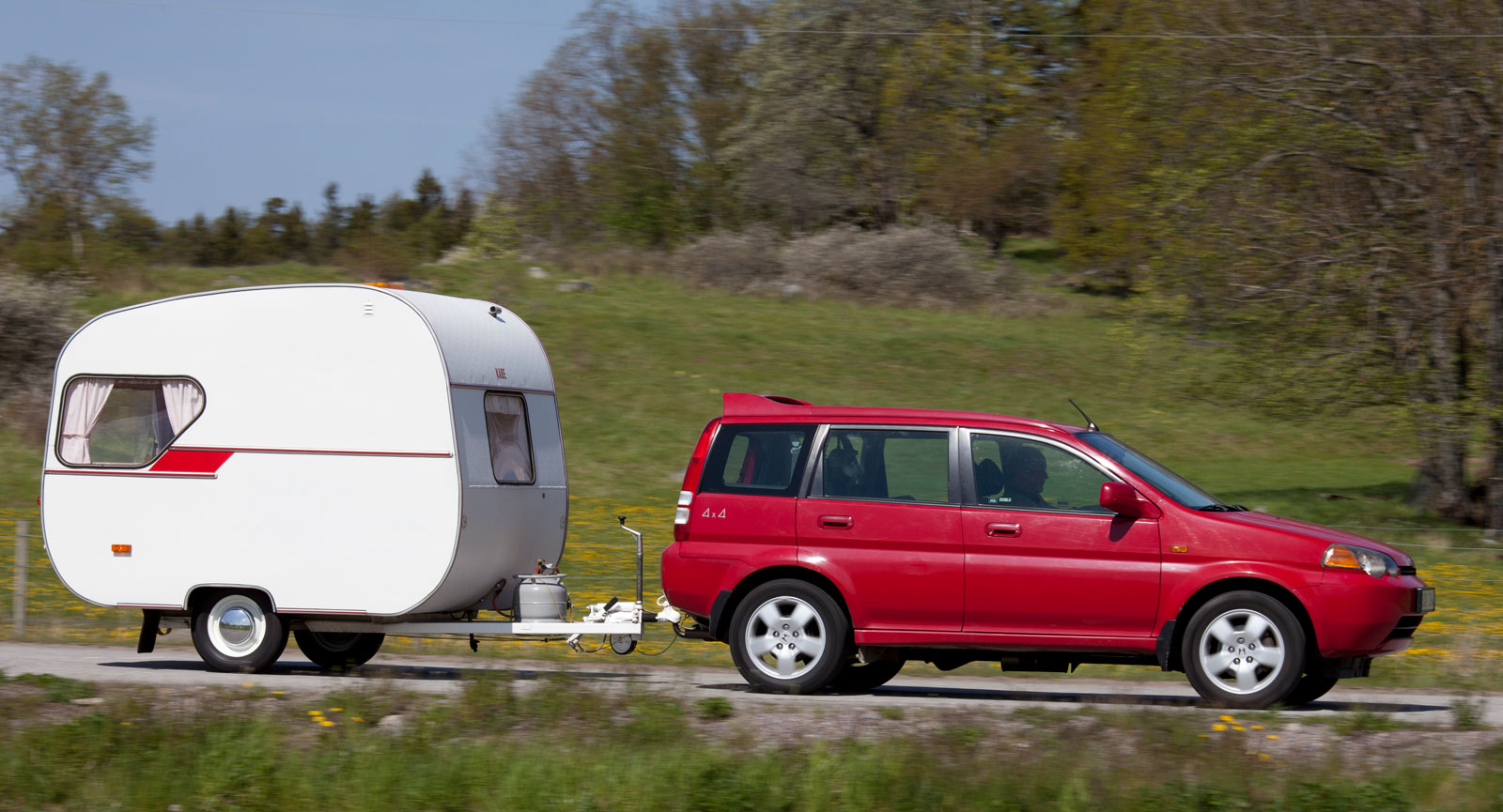 Dragbilen ser aningen kantig ut jämfört med den vackra vagnen.