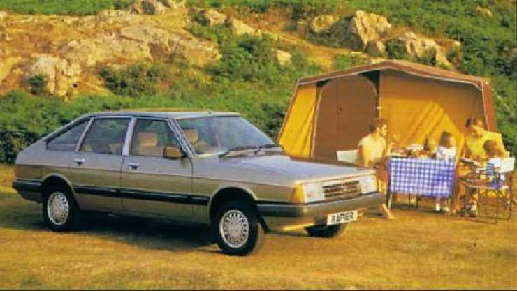 Tälta med Talbot 1985. Den ursprungliga Simca 1307 döptes om många gånger, och de sista åren hette den Talbot Rapier i England.