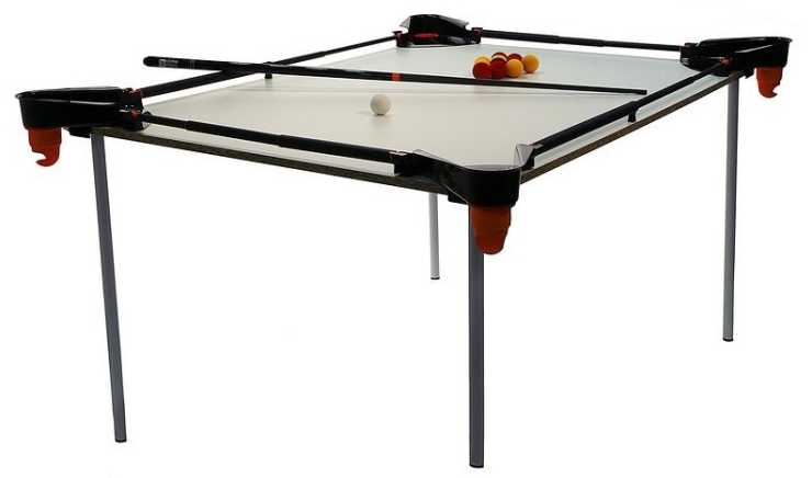 Vem drömmer inte om ett eget biljardbord på campingen eller hemma? Nu finns ett biljardbords-set där du kan förvandla campingbordet till ett biljardbord. Biljardspelet går att montera på vilket bord som helst, oavsett om det är fyrkantigt, rektangulärt eller till och med runt.