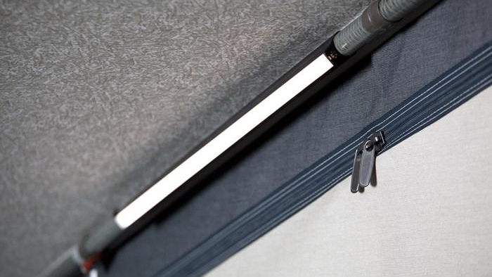 En smidig belysning i förtältet är en rörbelysning för att sätta fast på tältets stativ.