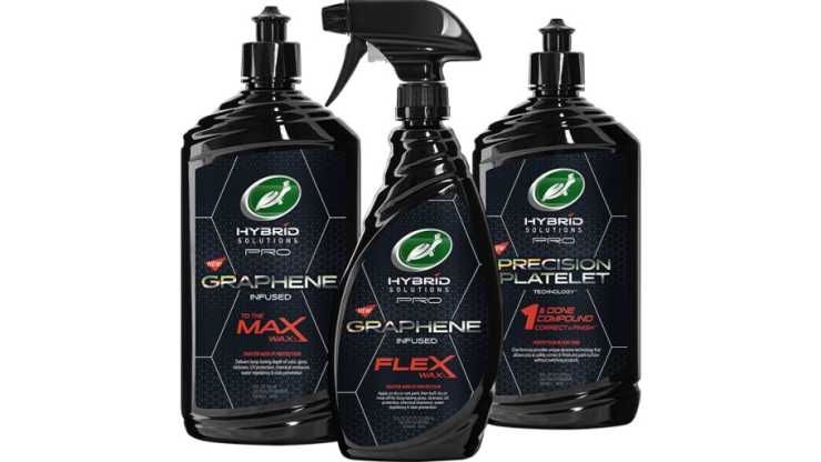 Turtle Wax Hybrid Solutions Pro Flex Wax är ett sprayvax som kan appliceras på torr eller våt lack och som innehåller grafen, vilket tillför ett starkt nät av skydd för, enligt Turtle Wax, långvarig glans och skydd mot såväl fläckar, föroreningar och kemikalier som UV-strålning.