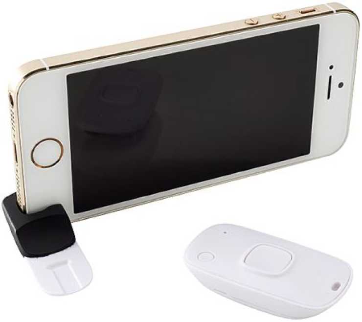 Kompatibel med iOS- och Androidtelefoner. Räckvidd 3 – 5 meter, mobilhållare medföljer. Används med en gratisapp som laddas hem. I appen finns även en självutlösare med 2 eller 10 sekunders fördröjning. Batteri: 1 st CR2032. Fjärrutlösaren fungerar ej i bullrig miljö.
