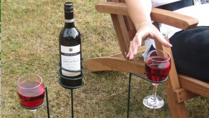 Sitter ni ofta ett gäng runt husbilen eller husvagnen och pratar om just ingenting? Då är kanske den här glas och flaskhållaren den perfekta prylen! Finns även i öl- och kaffeversion.