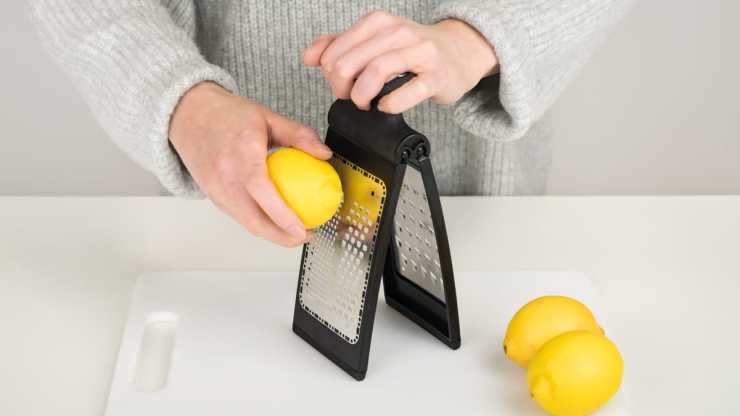 Det hopfällbara rivjärnet spar mycket plats i skåpet och river i tre olika grovlekar, grovt, fint och zest. Rivjärnet levereras med ett fotstöd som dessutom fungerar som ett uppsamlingstråg. Zestjärnet är till för att riva skal från exempelvis en apelsin eller citron.