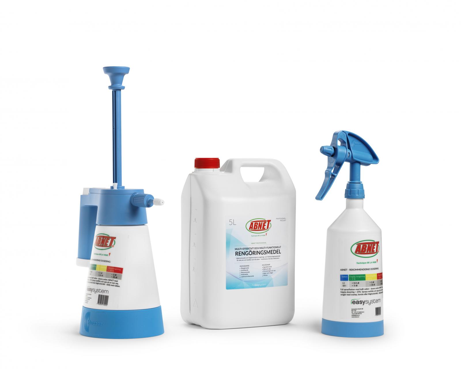 Abnet kommer från Frankrike men tillverkas i Laxå. Rengöringsmedlet har ett brett spektrum av tillämpningar och doseras i vatten beroende på nedsmutsningsgrad.