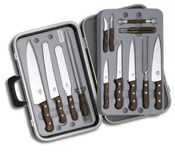 - Kockkniv 28 cm, Brödkniv 26 cm, Stekspatel 23 cm, Skärpstål 27 cm, Grönsakskniv 6 cm, Potatisskalare, Legymjärn 22/25 mm, Citronrivare, Citronstrimlare, Grönsakskniv 10 cm, Styckkniv 15 cm, Filékniv 18 cm, Tranchergaffel 18 cm, Kockkniv 19 cm