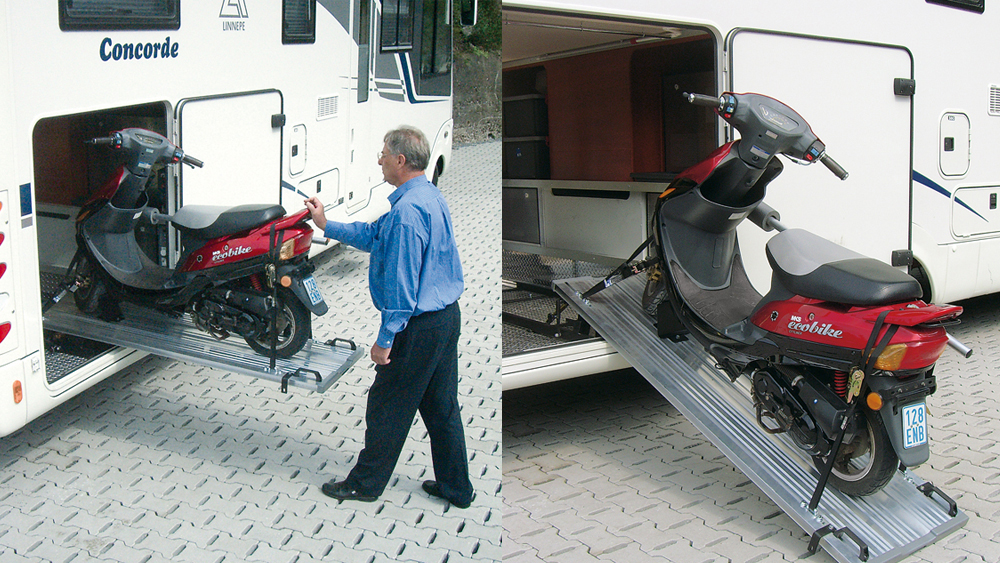 Har din husbil ett garage som är tillräckligt stort för en scooter men för högt och opraktiskt för att lasta in den? Nu finns en smidig lösning! Kolla in videon!
