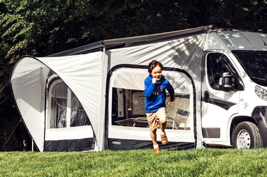 Den patenterade konstruktionen från Thule är deras lättaste förtält hittills och har vikter mellan 16 och 20 kilo beroende på vilken av de fem storlekarna som väljs. Förtältet fungerar ihop med deras markis och passar såväl husbilar som husvagnar.