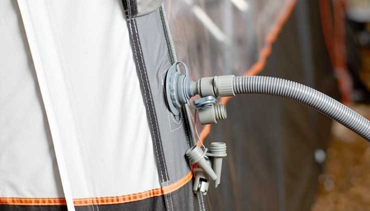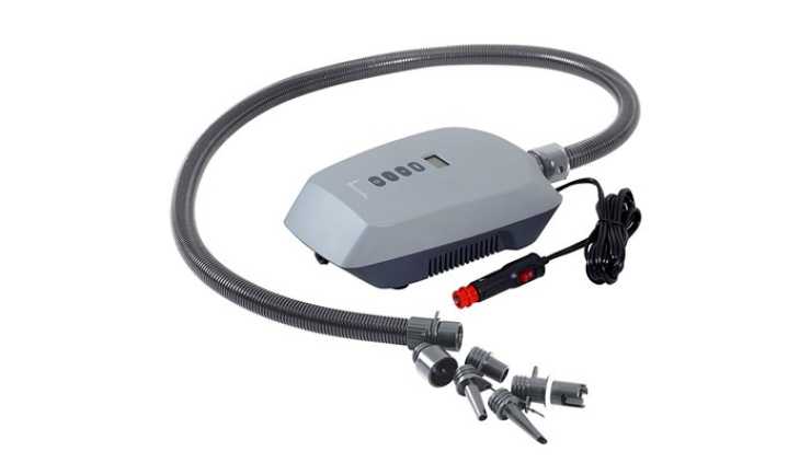 Pumpen är från det danska företaget Isabella och drivs på 12 volt via en fem meter lång sladd men det går att köpa till en AC-adapter. Med pumpen följer olika munstycken så att den kan användas för både lufttält och andra uppblåsbara saker.