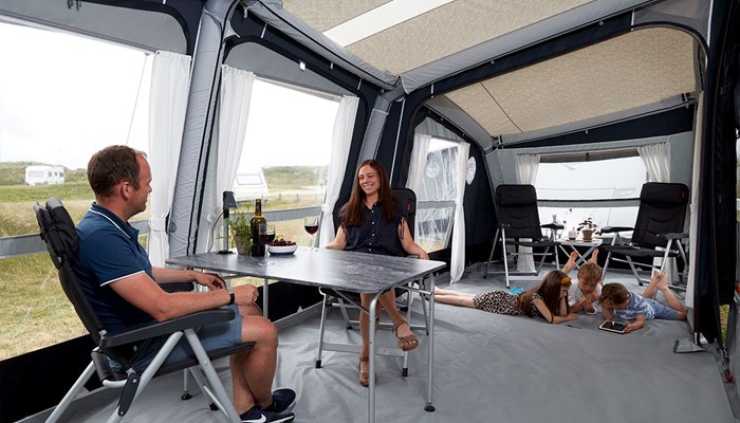 Isacryl-materialet är helfärgat för att få lång livslängd på färgerna och förtältet är försett med stora fönster försedda med myggnät på båda sidor för att få ett bra inomhusklimat och minimal kondens. Front och sidor är tillverkade av det traditionella och genomfärgade Isacryl som de beskriver som ett lätt, robust och särskilt andningsbart material. Förtältet har enbart luftkanaler, inga tältpinnar behövs.