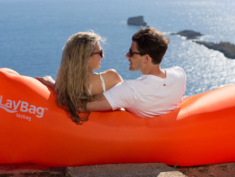 LayBag har många användningsområden, den kan vara soffan att ta med till festivalen, stranden eller i campingsammanhang. Den är tillverkad i förstärkt nylontyg vilket gör att den kan användas på ojämna och hårda ytor som berg, sten, cement och grus. När Laybag är fylld med luft är det inte bara en soffa utan flyter dessutom bra i poolen.