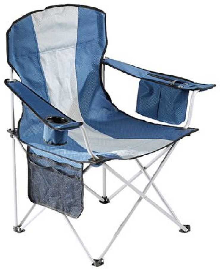 Lackerat stålstativ med kraftigt polyestertyg, samt burkhållare och tygficka. Kylväska inbyggd i armstödet, med plats för 2–3 burkar. Mått uppfälld: 90 x 60 x 50 cm, sitthöjd 44 cm. Max belastning: 150 kg.
