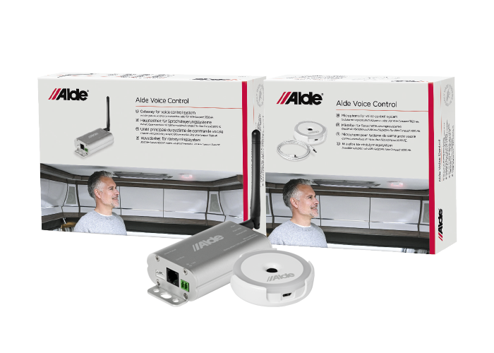 Styrsystemet består av en mikrofon som sätts i innertaket i husbilen eller husvagnen samt en mottagare som monteras dolt i anslutning till Aldes manöverpanel, produkter som är enkla att installera både vid nytillverkning och eftermontering. Alde Voice Control-systemet erbjuds i fyra språkvarianter, svenska, engelska, tyska och franska och kan styra Alde 3010 och Alde 3020 HE.