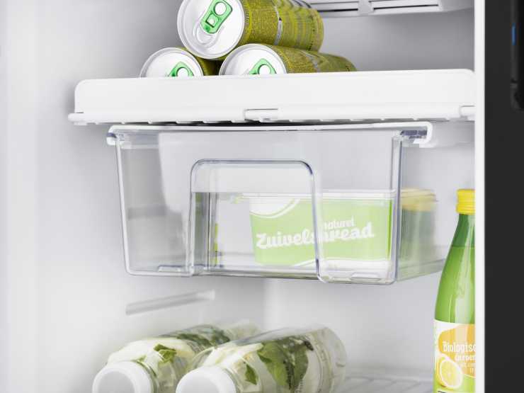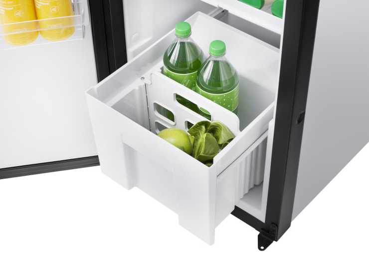 En fördel som detta kylskåp har är en utdragbar låda som gör det enklare att förvara 2-litersflaskor och grönsaker. Den utdragbara lådan, som även finns i N3140-serien, är mycket bra för frukostvaror och underlättar en snabb hanteringstid vilket innebär att kylan behålls i skåpet. För att hålla maten på plats under körning finns en livsmedelshållare som dessutom kan den vikas ihop när den inte behövs. Nattläget ger därutöver en tystare gång vilket minskar störande ljud kvällar och nätter.