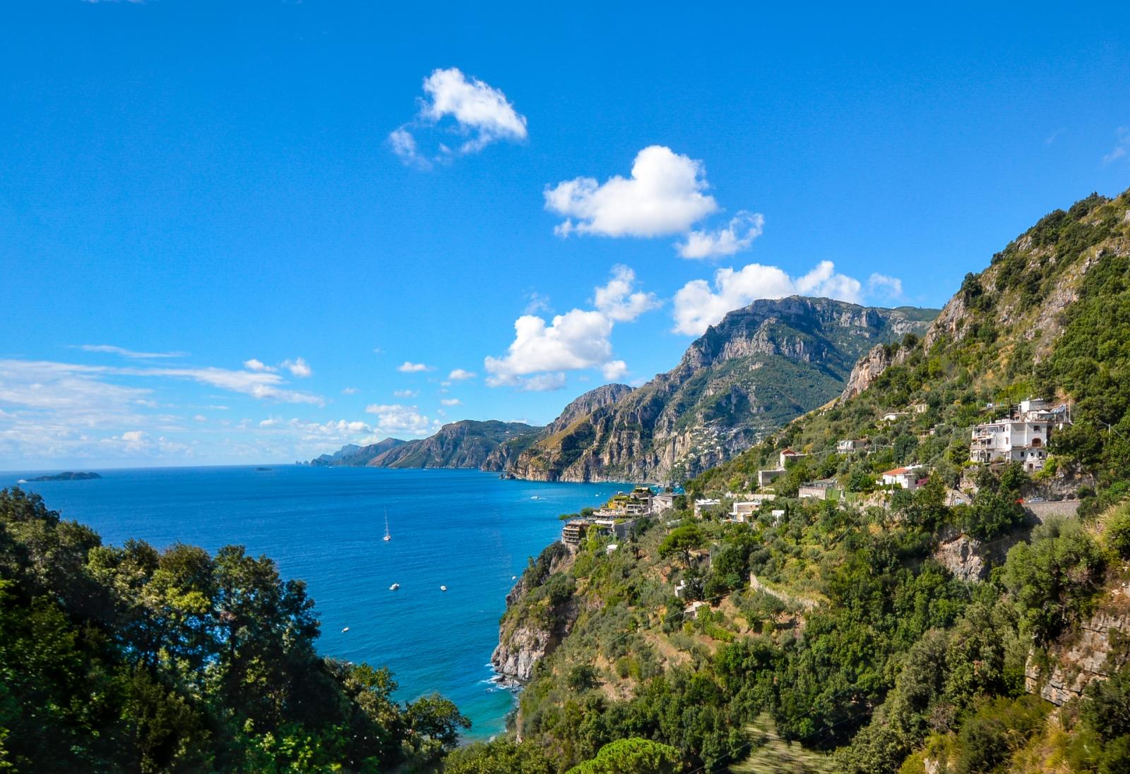 Den fantastiska vägen längst med Amalfikusten i Italien