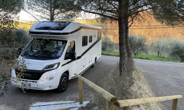 Trångt om härligheten när man kör halvintegrerad husbil i Toscana.