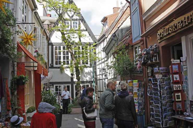 Vi promenerar från den centralt belägna ställplatsen i Bremen in mot den pittoreska stadsdelen Schnoor där husen nästan nuddar varandra. På vägen njuter vi av blomsterprakten och kanske ett glas öl från stadens bryggeri, Beck´s.