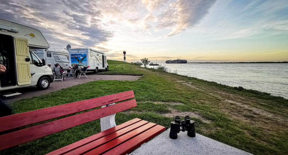 Stora fartyg på floder har en särskild lockelse. Dels kommer man nära och fartygens storlek blir extra tydlig på smala vatten. Har man dessutom en husbil och en bra ställplats att kika från blir det än bättre. Här följer ett ställplatstips vid floden Elbe.