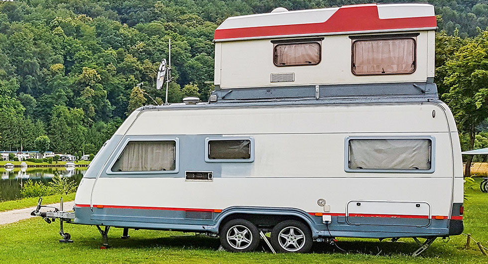 Detta är som en skvader, hopbyggd av två olika husvagnar. Bottenvåningens Westfalia Columbus är en ikon i sig själv, men fanns knappt i Sverige. Övervåningen är en Esterel.