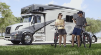 Filmklipp: Husbil och lastbil i ett paket Nyheter 16 december 2015 Det här paret har drömjobbet för heltidscampare. De bor i sin Volvo långtradare som kanske är mer husbil än lastbil! När de jobbar drar de trailers runt USA och ledig tid åker surfbräda eller cykel fram. Gasa