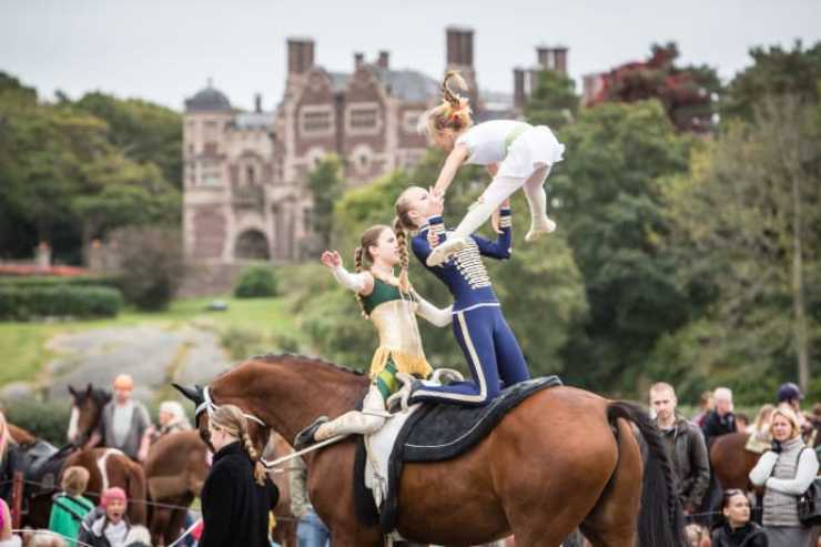 Det finns mycket att göra och upptäcka på skördefesten för både stora och små besökare. Hälsa på gårdens djur, provsitt en traktor, åk häst och vagn runt godset, hoppa i säden och kärna smör.