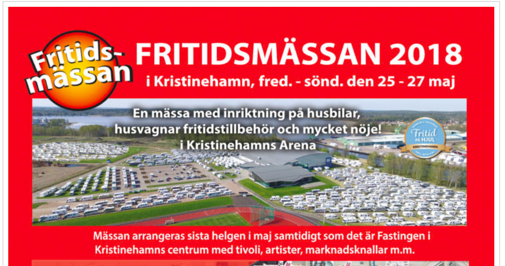 Kristinehamns Arena är platsen för den tre dagar långa Fritidsmässan, i år 25-27 maj, samtidigt som marknaden Fastingen hålls i staden.