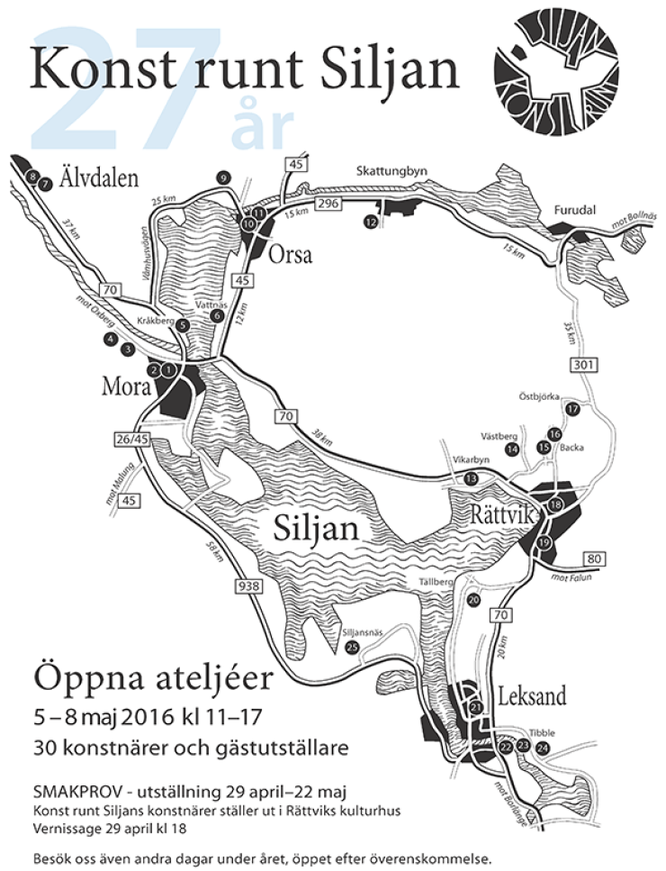Under Kristi Himmelsfärdshelgen, 5-8 maj, kan du besöka "Öppna ateljéer" som oavsett om du besökt området runt Siljan tidigare eller ej ger dig en bra ursäkt för att köra Siljan runt.