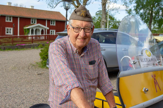 Kjell Boberg jobbade som vägsamarit på 50-talet. Nu ställer han ut sin motorcykel på Riksettanrallyt.