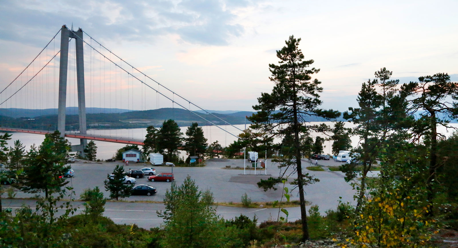 Ett tips till dig som färdas längs E4 mellan Härnösand och Ullånger är att stanna till vid bron vars förebild är Golden Gate i San Fransisco. Här står du gratis i ett dygn och strax intill finns god mat och trevliga promenadstigar på berget.