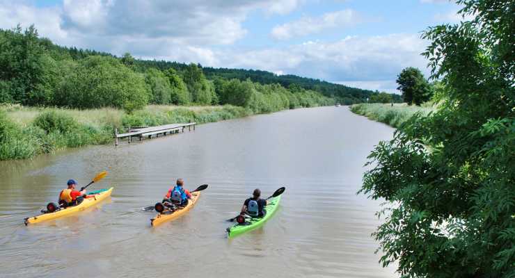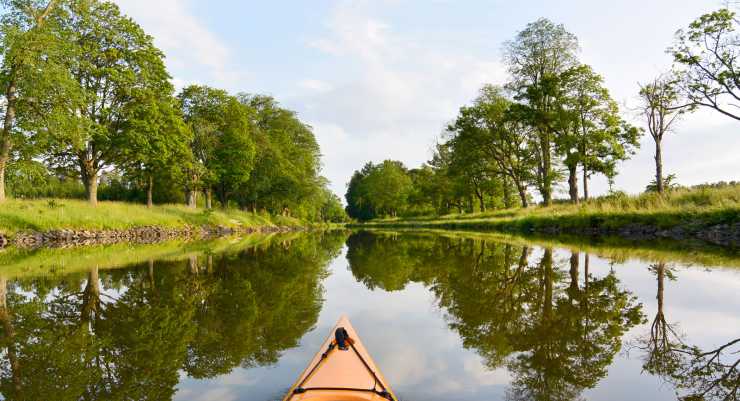 Snart är dock alla tvivel som bortblåsta, då äventyret börjar på bästa tänkbara sätt. Solen skiner från en helt molnfri himmel, vattnet ligger alldeles stilla i kanalen och från kajakernas sittbrunn hälsar vi på glada semesterfirare som vinkar åt oss ifrån fritidsbåtar samt från gång- och cykelbanan. De pittoreska omgivningarna och njutningen vi upplever när vi med lugna paddeltag glider fram på vattnet, gör det svårt att föreställa oss att folk en gång i tiden bokstavligt talat jobbade ihjäl sig här. I början av 1800-talet arbetade nämligen 58 000 soldater tolv timmar per dag med att gräva Göta kanal, som en del i att skapa en direkt förbindelse mellan Kattegatt och Östersjön.
