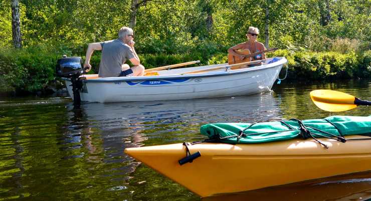 Vi har nu paddlat i några timmar och befinner oss strax väster om Töreboda. Kvinnan och hennes man sitter och lapar eftermiddagssol medan de tar en drink och lyssnar till en låt av Ulf Lundell. Och visst har hon rätt; nu har sommaren verkligen kommit. Än mer säkra på den saken blir vi väl framme i Töreboda, där ortens sedvanliga sommarfestival äger rum dagen till ära.