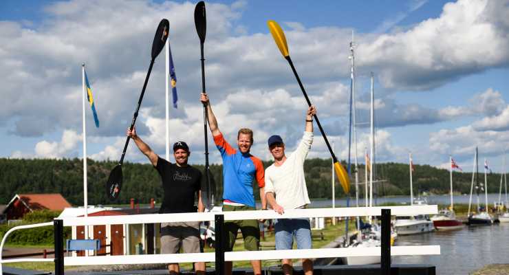 Vi gjorde det! Jens, Niclas och David vid slussen i Mem.