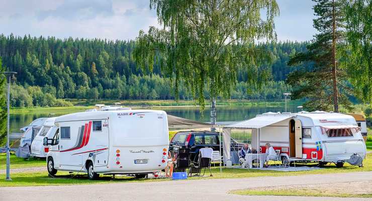 Husbilar och husvagnar samsas om den fantastiska utsikten.