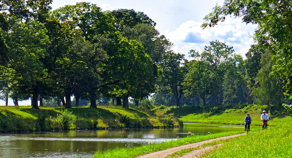 De gamla dragvägarna utmed Göta kanal lämpar sig perfekt för behagliga cykelturer.