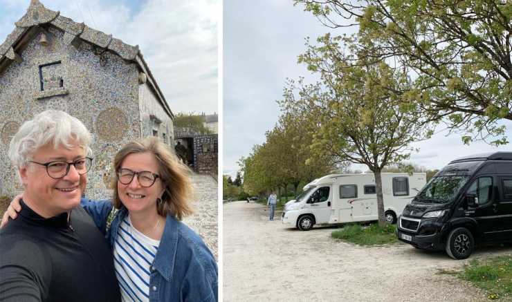Mats Fogeman och Anki Sydegård besöker Maison Picassiette i Chartres och fricampar på en parkering i utkanten av staden.