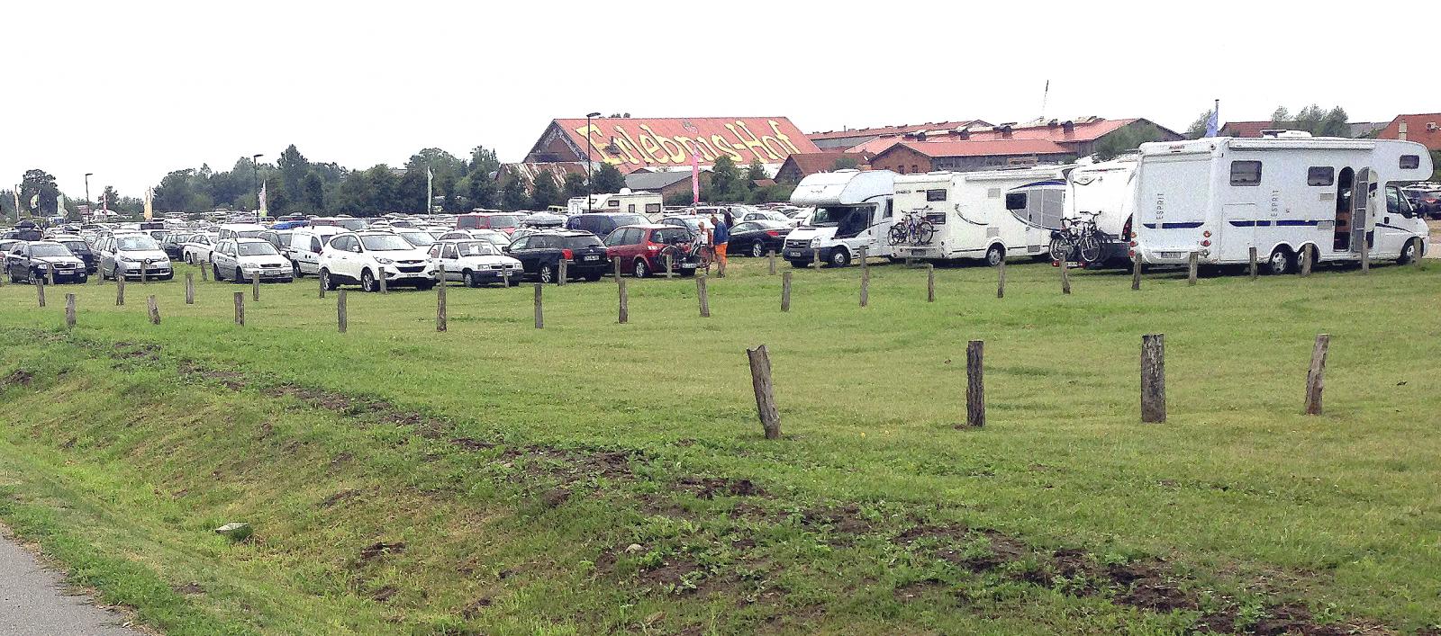 Parkeringarna utanför är stora så att även de största husbilarna ryms, åtminstone i Rövershagen. Vackert byanamn för övrigt…