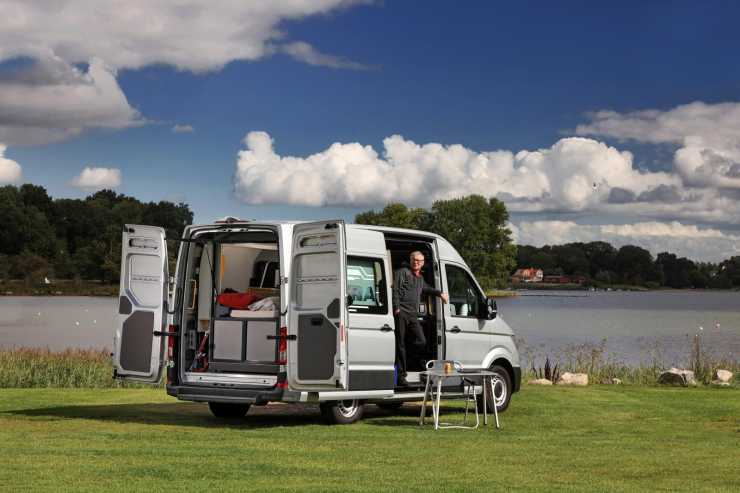 PlugVan living space är en modulinredning som sätts in i Crafter utan att det kräver några modifieringar utan fästs i de ordinarie lastöglorna. Inredningen består av en säng (200x165 cm), köksenhet med ho, spis och ett litet kylskåp.