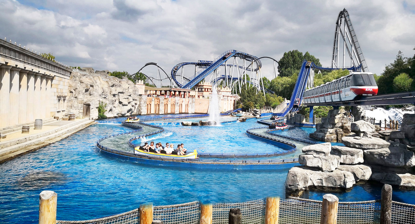 Grekland går förstås i blått och vitt och där härskar vattenburna attraktionen Poseidon.
