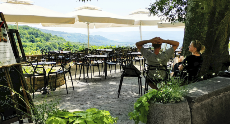 Artikeln handlar om två resmål. Dels vårt högkvarter på campingen och dels konstnärsbyn Groznjan som med sina uteserveringar är en härlig dagsutflykt.