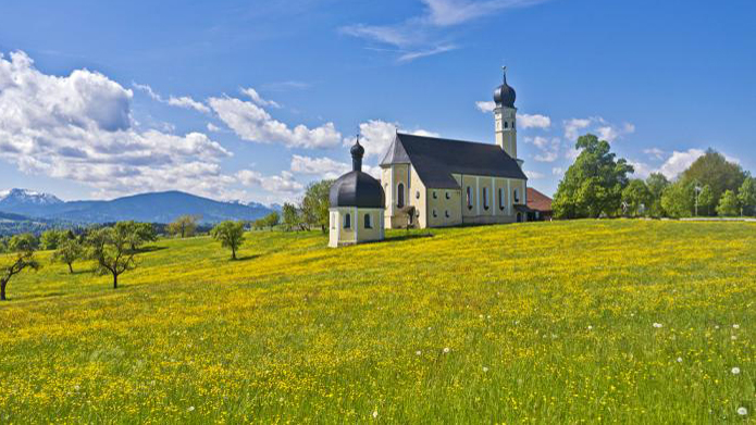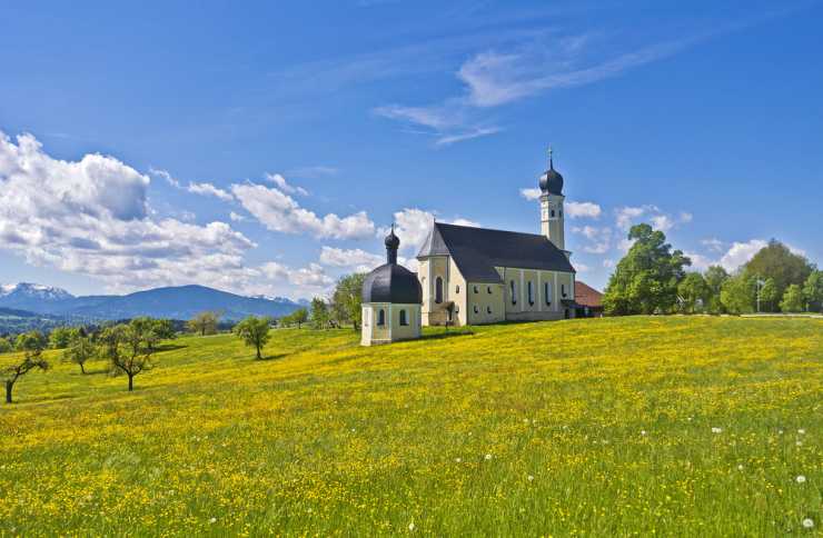 Utsikten över det böljande landskapet avslöjar en charmig liten bayersk by i fjärran. Den speciella lök-kupolen på kyrkan talar genast om att vi är i Sydtysklands grönskande landskap. Den perfekt underhållna vägen följer det böljande landskapet och bjuder hela tiden på spännande orter som inte går att hålla i bättre skick. Vi är i Europas rikaste område och det syns på allt som mänsklig hand rör vid.