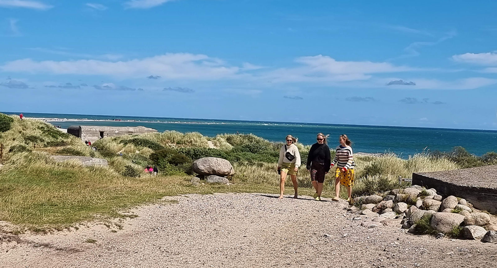 Promenaden från husbilen till nordpunkten Grenen är cirka 1,5 km lång. Väl på plats får man se Skageraks och Kattegatts möte.