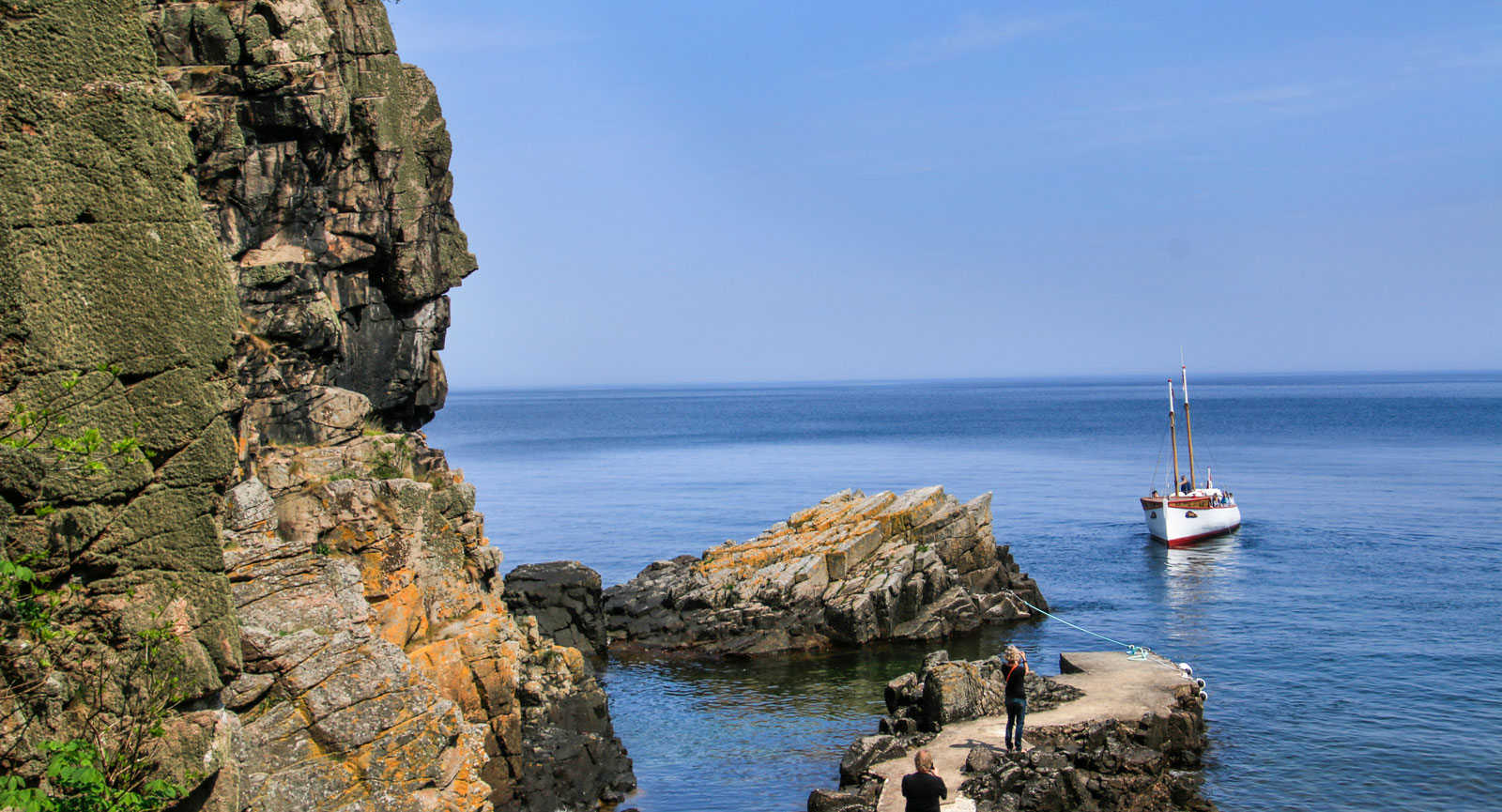 Helligdomsklipperne nära Stammershalle är ett sällsamt stycke klippigkust. Det är populärt att åka båt hit från Gudhjem.