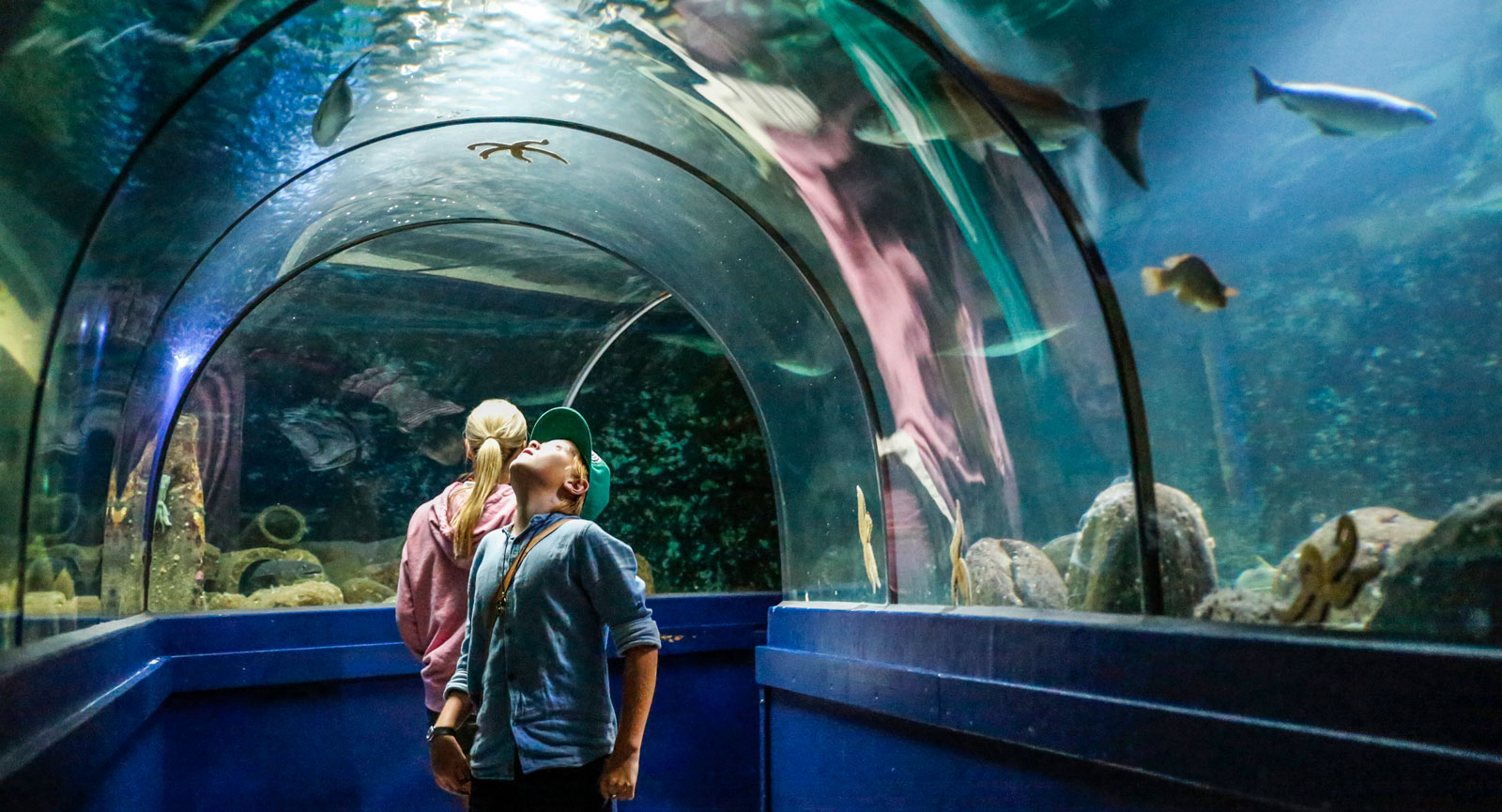 På Havets Hus i Lysekil kliver du rakt in i Västerhavets djup och får möjlighet att stifta bekantskap med hajar, rockor och havsål.