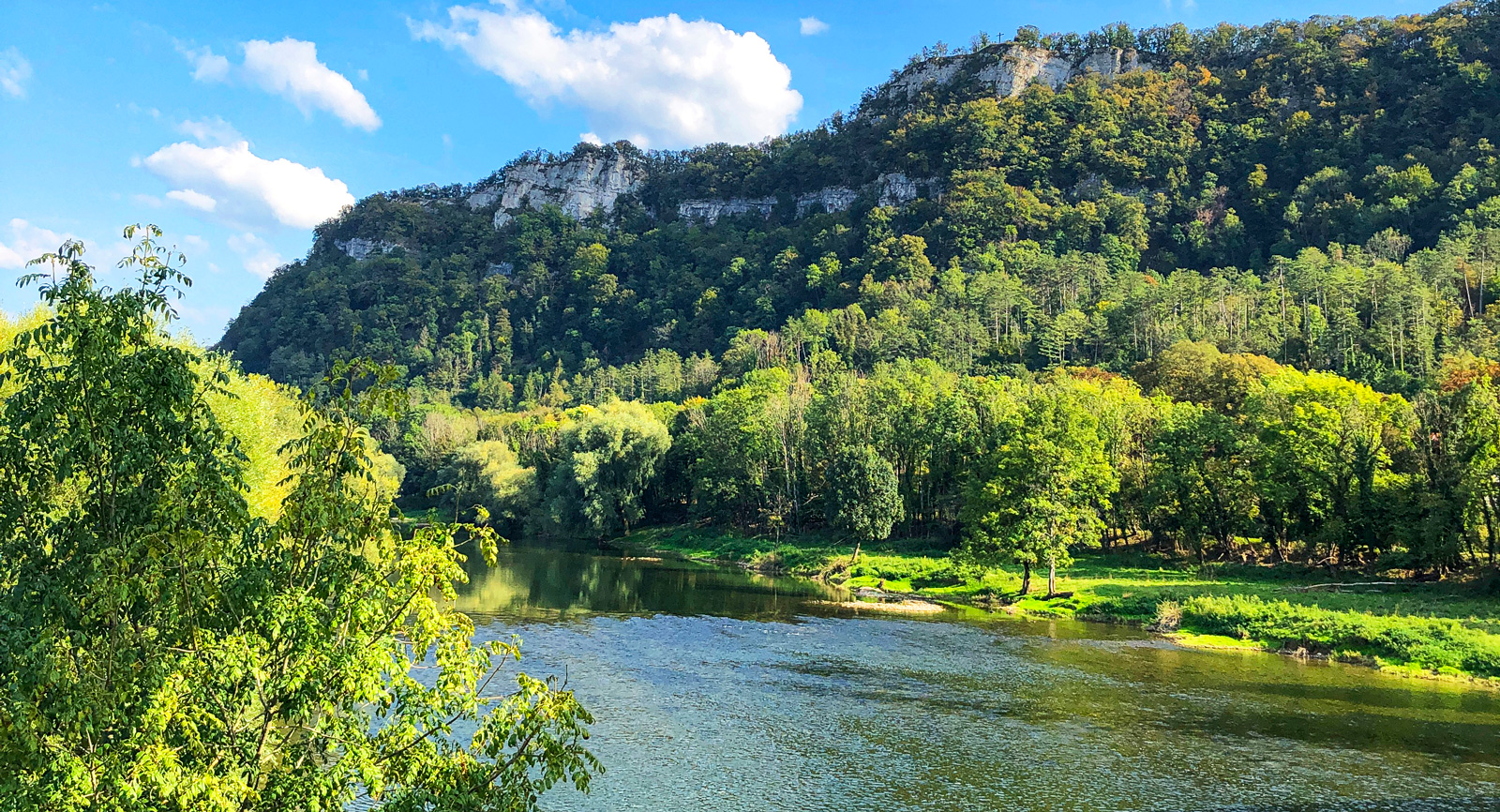 Stopp 4. I Baume-les-Dames laddar vi batterierna vid en skön ställplats mellan floden Doubs och de branta sluttningarna upp mot Jurabergen. Men framför allt laddar vi med varor från ortens superfina livsmedelshall.