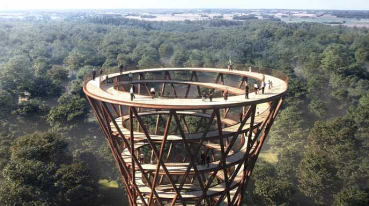 Nu är det enorma utsiktstornet som en del Camp Adventure Park i slutet av färdigställandet och tornet öppnar den 31 mars 2019. Tornet har skapat intresse internationellt både för sitt utförande och sitt läge intill E47 söder om Köpenhamn invid Ejots kontor i Rönnede. Tornet har 13 spiraler och avslutas med 360 graders utsikt.
