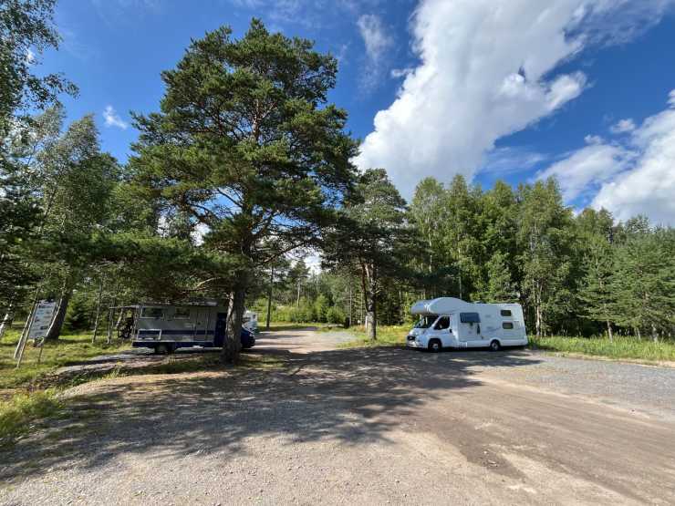Det första badet, och som ligger mest söderut, är Nyängets havsbad vid Domsjö strax söder om Örnsköldsvik. Här finns en stor grusplan att stå på i 24 timmar och som är gratis. Trots att vi besökte platsen mitt i högsäsong fanns det mycket gott om plats att ställa upp sig på. Under vår resa åkte vi med den lilla och smidiga campingbilen Adria Active Pro men även större ekipage kan utan problem få plats här.