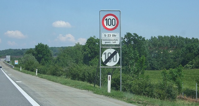 För samtliga vägar kan det vara lägre hastighetsgräns vid regn, tilläggstavla "bei Nässe".